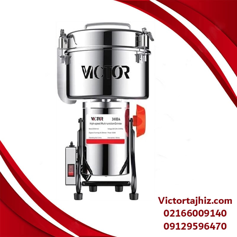 آسیاب عطاری 3000 گرمی گهواره ای ویکتور بزرگترین نمونه ی تولید شده توسط این برند چینی می باشد که کاربردی کاملا صنعتی دارد. این آسیاب برقی از موتوری با قدرت 1.7 اسب بخار بهره میبرد و دور موتورآن به 28000 دور در دقیقه می رسد. آسیاب عطاری ویکتور با داشتن ابعاد 42×31.5×28.5 سانتی متر و وزن 12 کیلوگرم ، برای استفاده در مشاغلی که با کمبود فضا دارند نیز مناسب می باشد. در زیر بدنه ی آن ، پایه هایی ضد لغزش قرار داده شده که از تکان خوردن و لرزش دستگاه به هنگام کار جلوگیری می کند. این محصول نیز مانند انواع آسیاب ویکتور از استیل ساخته شده که علاوه بر رعایت نکات بهداشتی ، به مقاوم نمودن آسیاب نیز کمک بسیاری نموده است. استیل بدلیل خاصیت ضد خط و خشی که دارد زیبایی ظاهری بسیاری نیز برای کاربر فراهم می سازد. یکی از مزیت های مهم آسیاب گهواره ای ویکتور ، مجهز بودن به سیستم میکروسوئیچ بوده که در صورت بسته نشدن درب ، از شروع شدن فعالیت موتور جلوگیری خواهد کرد. این ویژگی موجب بالا رفتن سطح امنیت کاربر گردیده است. تیغه ی فولادی تعبیه شده بر روی این دستگاه قادر به پودر نمودن انواع مواد غذایی سفت و محکم می باشد که دیگر نیازی به الک نمودن مواد نخواهد بود .