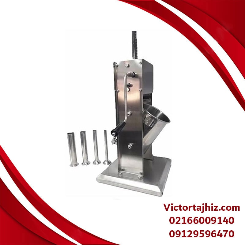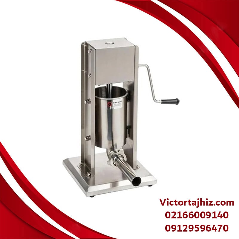 سوسیس پر کن 5 لیتری دستی ویکتور یکی از انواع سوسیس پر کن های صنعتی بوده که گنجایش مخزن آن به 5 لیتر می رسد. این میزان ظرفیت موجب شده که در هر پارت 5 کیلوگرم بازدهی داشته باشد . از مزیت‌های مهم این دستگاه سوسیس پر کن 5 لیتری ، استفاده از آلیاژ استیل در تولید آن است که علاوه بر رعایت جنبه بهداشتی ، به زیبایی دستگاه با ایجاد ظاهری صاف و صیقلی کمک کرده است. گفتنی است که تمامی قطعات به کار رفته در این محصول به راحتی از هم جدا می‌شوند و قابل شستشو هستند. دستگاه سوسیس ساز ویکتور مشتکل از قطعاتی نظیر: مخزن استوانه‌ای شکل، یک دسته، یک پایه چهار گوش تخت و یک اهرم می‌شود .با خرید سوسیس پر کن دستی ویکتور به راحتی می توانید 4 مدل سوسیس در سایز های مختلف تولید کنید و این عمل را با کمک 4 نازل یا قیف خروجی در قطر های 2،3،4،و5 سانتی متر که بر روی دستگاه تعبیه شده انجام خواهید داد .